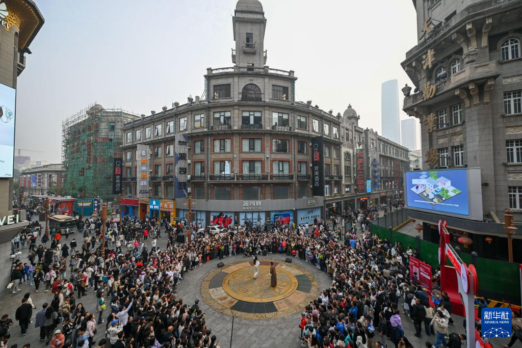 当日,曹禺名剧《日出》在其故事背景地——惠中饭店,现天津金街步行街大铜钱广场进行首场常态化演出。天津北方演艺集团、天津人民艺术剧院将于每周六和节假日(极端天气除外)的下午2:30在这里为市民游客带来《日出》等经典话剧的街头演出,带领观众沉浸式感受天津城市文化魅力。