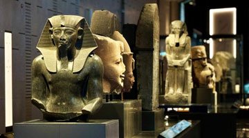 10月29日,观众在太原北齐壁画博物馆体验互动项目。