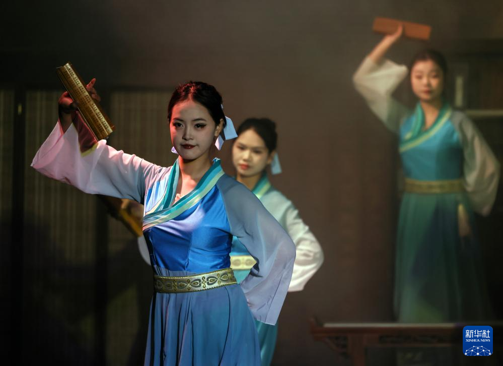 11月5日拍摄的实景演出《蜀道盛世》中的“亮花鞋”。