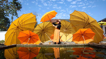 11月16日,观众在保利美高梅博物馆参观展出的云锦《丝路华章》卷轴。