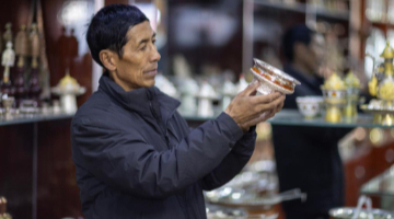 3月8日,在新疆都拉塔口岸房车露营基地,风筝爱好者放飞风筝。