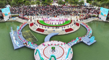 4月2日,湖北省武汉市洪山区未来实验小学美林校区学生在读书日活动中吟诵古诗。