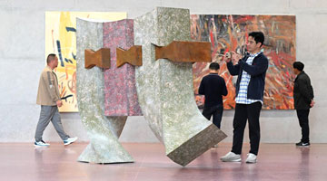 5月10日,游客在敦煌石窟文物保护研究陈列中心参观。
