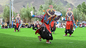 7月20日,革吉县牧民把装好的盐绑在羊身上。
