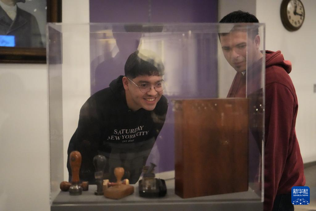 11月8日晚,人们在位于阿根廷布宜诺斯艾利斯自由宫内的邮政博物馆参观。