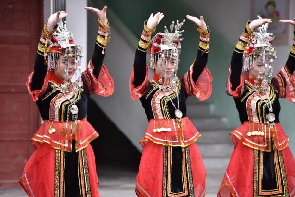 ????畬族歌舞團表演的舞蹈《鳳冠銀冠》。楊龍坤 攝