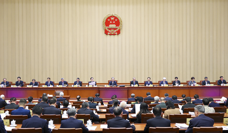 10月24日下午,十四届全国人大常委会第十八次会议在北京人民大会堂举行第二次全体会议。赵乐际委员长主持。