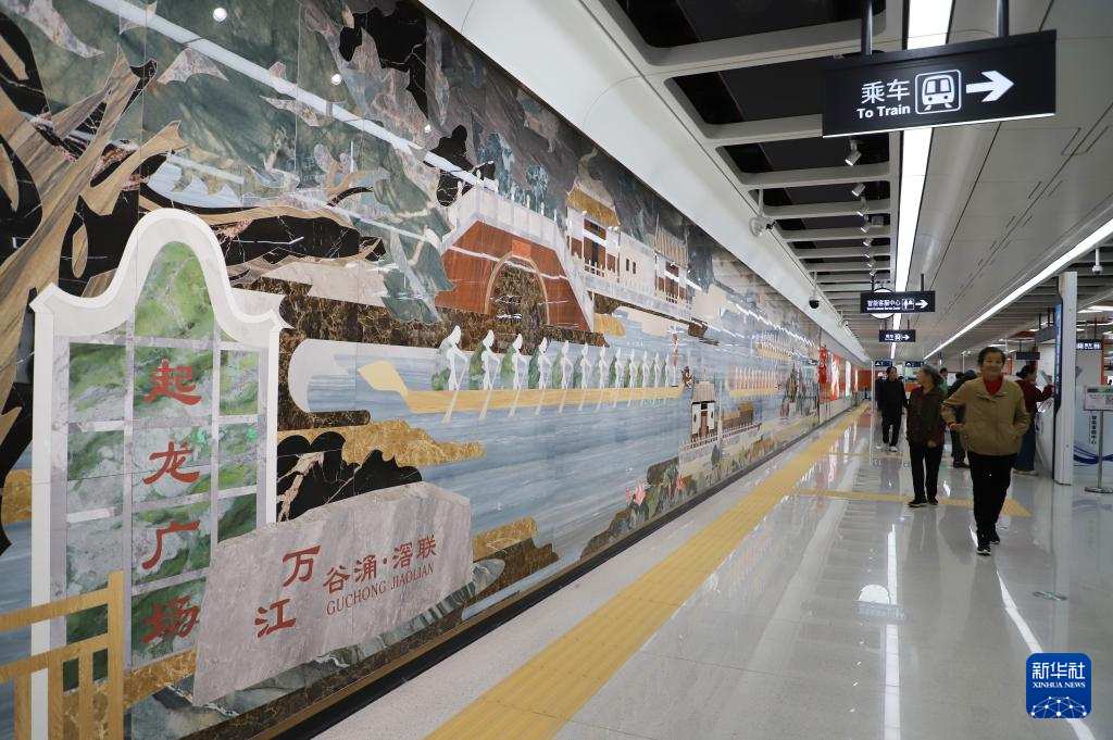 11月28日,市民在东莞轨道交通1号线曲海站观看文化墙。