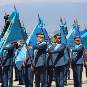 11月27日,在委内瑞拉马拉凯市的解放者空军基地,空军部队军人列队参加空军成立105周年纪念活动。