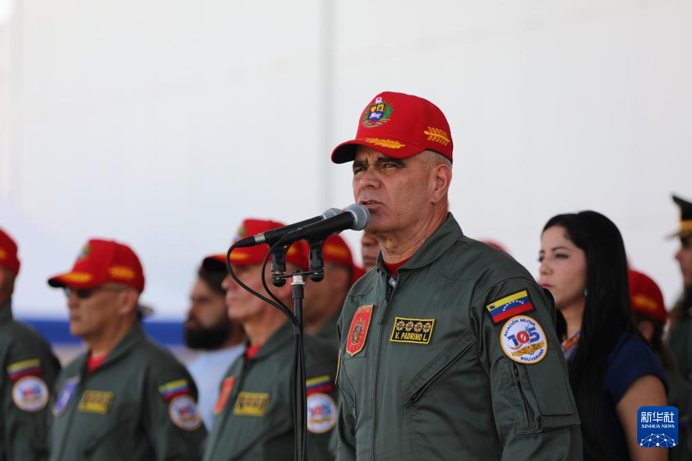 11月27日,在委内瑞拉马拉凯市的解放者空军基地,委内瑞拉国防部长洛佩斯在空军成立105周年纪念活动上发表讲话。