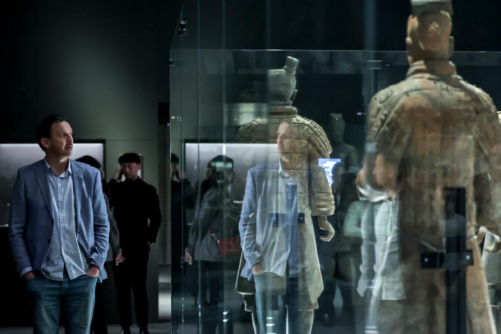 “秦汉文明展览”27日在匈牙利布达佩斯美术馆开幕。百余件春秋战国至秦汉时期代表性文物,包括10件秦始皇陵兵马俑亮相。