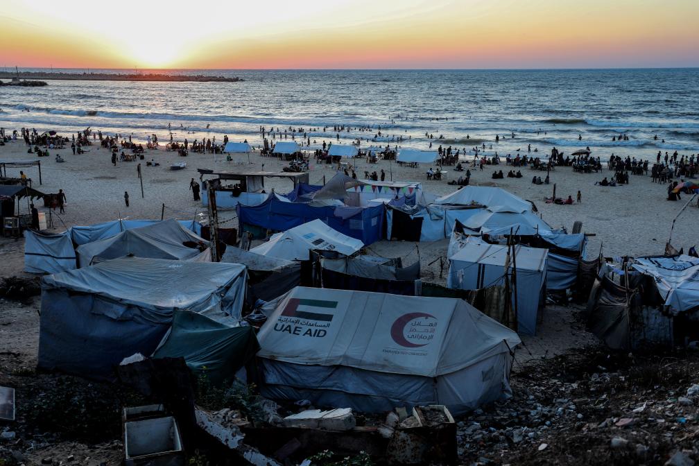 这是8月18日在加沙城拍摄的流离失所的巴勒斯坦人居住的帐篷。
