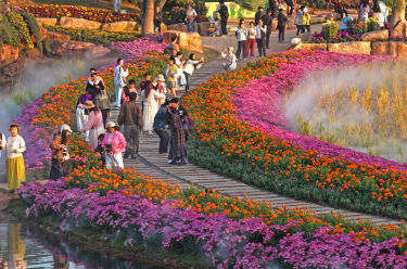 11月27日,一群绿头鸭聚集在降雪后的松花江哈尔滨段未结冰水域觅食、休憩。落日金晖映照下,白雪、寒江和绿头鸭组成了一幅寒江“戏雪”画卷。