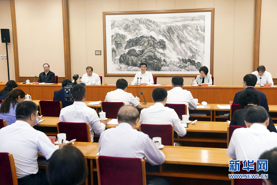 陳希主持座談會,孫春蘭、楊曉渡、黃坤明出席座談會。