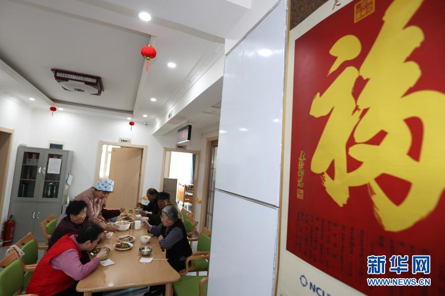 10月22日,老人們在西寧市城西區(qū)溫馨陽光托老所內吃飯。新華社記者 吳剛 攝