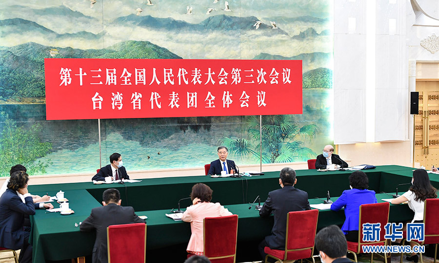 汪洋在臺灣代表團參加審議。在認真聽取陳軍、許沛、曾力群等代表發(fā)言后,汪洋指出,兩岸關(guān)系和平發(fā)展符合中華民族根本利益,也是兩岸同胞的共同心愿。要深入學(xué)習(xí)領(lǐng)會習(xí)近平總書記關(guān)于對臺工作的重要論述,認真貫徹落實黨中央決策部署,堅持“和平統(tǒng)一、一國兩制”基本方針,堅持體現(xiàn)一個中國原則的“九二共識”,強化塑造反“獨”促統(tǒng)大勢,堅決遏制任何形式的“臺獨”分裂活動,防范化解臺海重大風(fēng)險。要秉持“兩岸一家親”理念,落實落細各項惠臺利民舉措,有針對性地幫助臺資企業(yè)克服疫情影響、恢復(fù)發(fā)展活力,支持臺企臺商參與“新基建”和拓展內(nèi)銷市場,進一步為臺灣同胞特別是青年一代在大陸學(xué)習(xí)、創(chuàng)業(yè)、就業(yè)、生活創(chuàng)造更好條件,促進心靈契合。