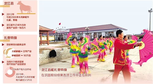 龍江縣是著名的雜糧產(chǎn)區(qū)、畜牧大縣。如今,龍江和牛已成為龍江縣畜牧產(chǎn)業(yè)的一張名片,帶領(lǐng)群眾走上致富路。“我們研究制定了《高檔肉牛優(yōu)勢(shì)特色產(chǎn)業(yè)集群建設(shè)方案》,從2016年起出臺(tái)了扶持政策。”龍江縣委副書記孫立軍告訴記者,當(dāng)?shù)匾龑?dǎo)企業(yè)與農(nóng)戶合作養(yǎng)牛,農(nóng)戶每購(gòu)買兩頭母牛,政府會(huì)給予一定的補(bǔ)貼款。此外,政府還向企業(yè)采購(gòu)凍精幫助農(nóng)戶繁育小牛,小牛犢生長(zhǎng)到6個(gè)月達(dá)標(biāo)后,由企業(yè)統(tǒng)一收購(gòu),價(jià)格在1.2萬(wàn)元至1.4萬(wàn)元不等。