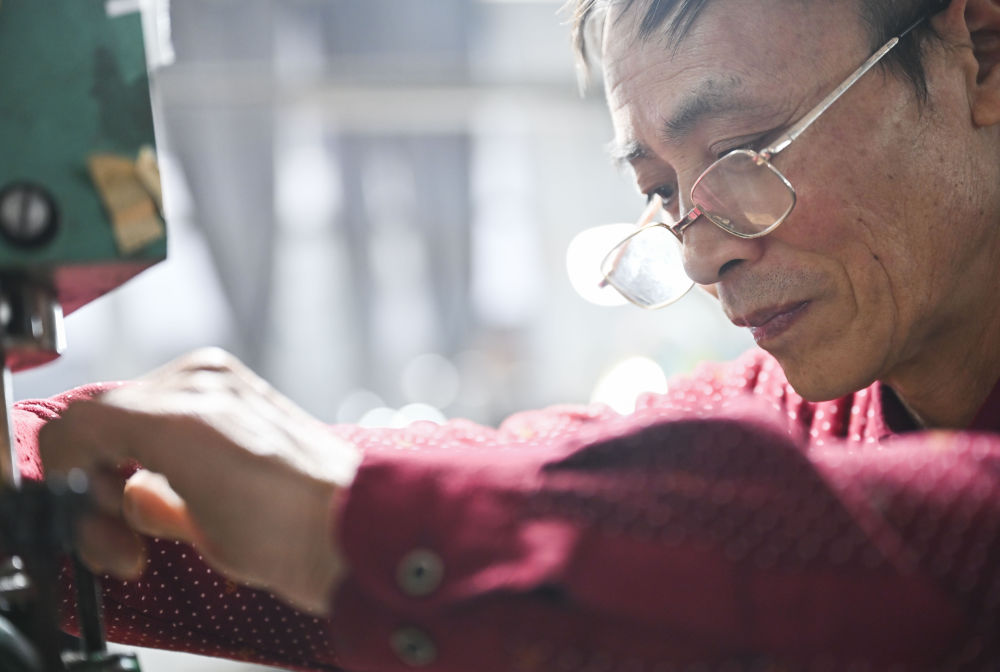 在福建省石獅市一家服裝廠,四川籍計件工人黃海龍剛剛做完了年前的訂單。