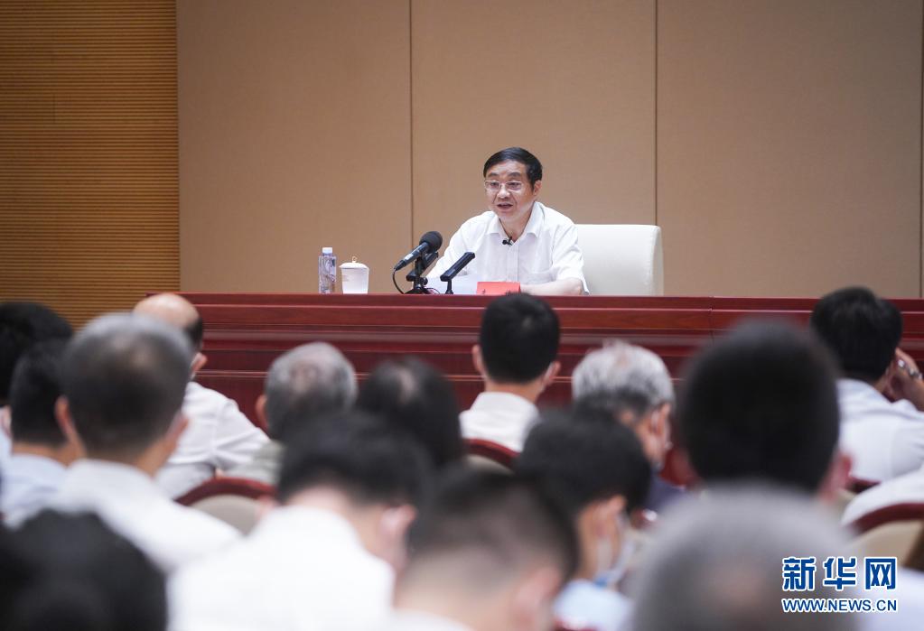 7月15日,黨史學(xué)習(xí)教育中央宣講團(tuán)成員吳德剛在第六場報告會上作宣講報告。新華社記者 陳曄華 攝