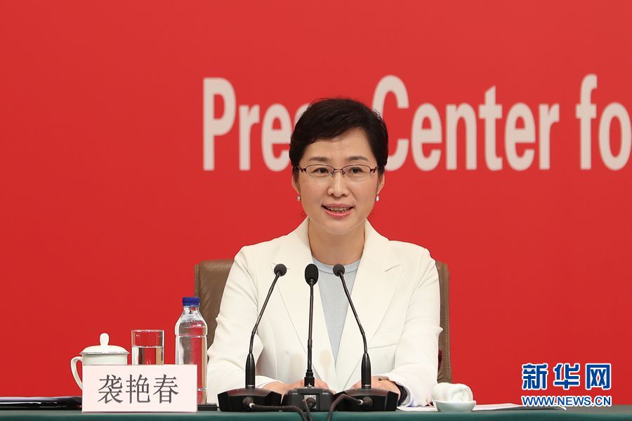 9月26日,慶祝中華人民共和國(guó)成立70周年活動(dòng)新聞中心在北京梅地亞中心二層新聞發(fā)布廳舉辦第二場(chǎng)新聞發(fā)布會(huì)。圖為慶祝中華人民共和國(guó)成立70周年活動(dòng)新聞中心負(fù)責(zé)人襲艷春。新華網(wǎng)記者 郭小天 攝