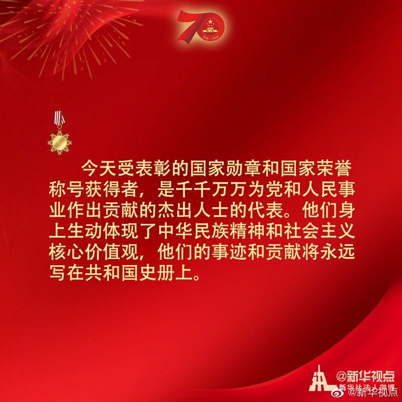 習(xí)近平在國(guó)家勛章和國(guó)家榮譽(yù)稱(chēng)號(hào)頒授儀式上的重要講話(huà)金句↓ ????