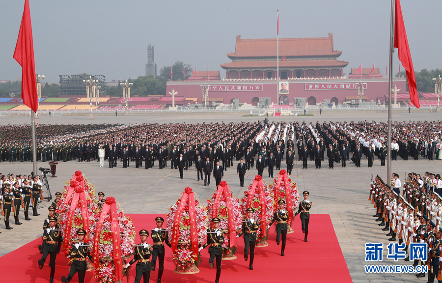 9月30日上午,習近平、李克強、栗戰書、汪洋、王滬寧、趙樂際、韓正、王岐山等黨和國家領導人來到北京天安門廣場,出席烈士紀念日向人民英雄敬獻花籃儀式。 新華社記者 龐興雷 攝