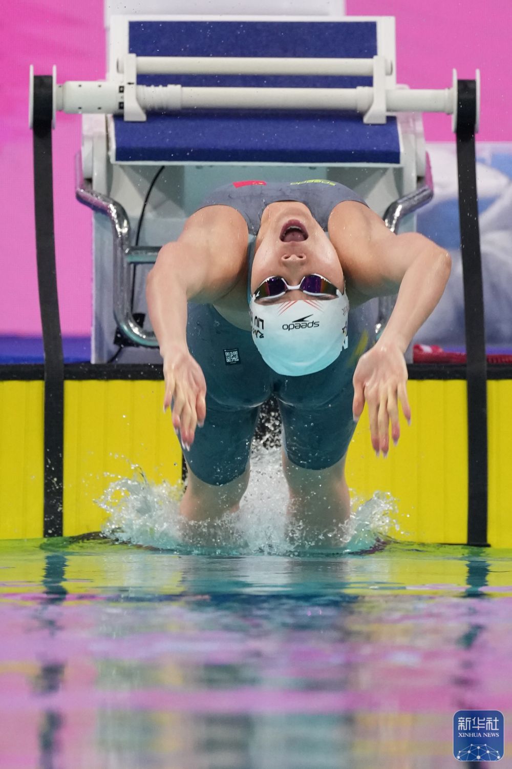 ↑浙江队选手柳雅欣在比赛中入水。新华社记者 丁增尼达 摄