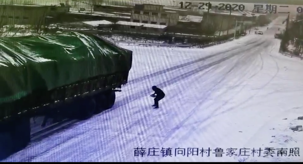 2020年12月29日,山東臨沂出現(xiàn)大雪降溫天氣,江蘇徐州一貨車在經(jīng)過費縣時,因積雪上坡道路結(jié)冰,司機緊急制動于事無補,車輛不斷下溜。