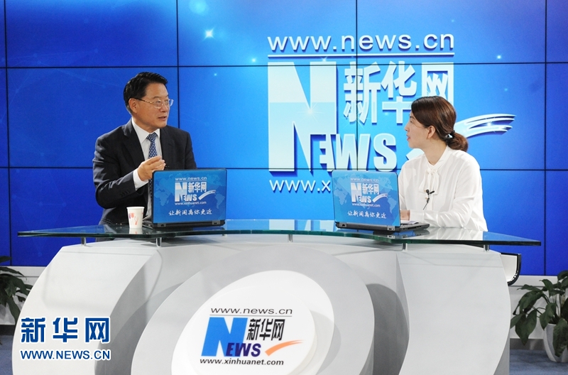 4月24日,聯合國工業發展組織總干事李勇(左)在北京接受了新華網獨家專訪。圖為李勇在接受本次訪談主持人、新華網海外傳播中心國際部主任徐倩專訪。新華網記者 陳競超攝