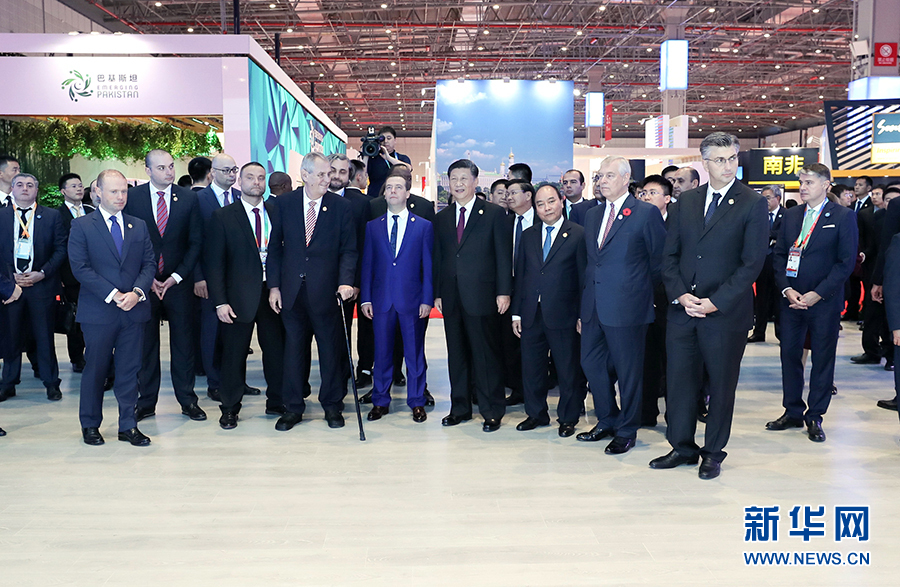 習近平同出席首屆中國國際進口博覽會的外國領導人共同巡館