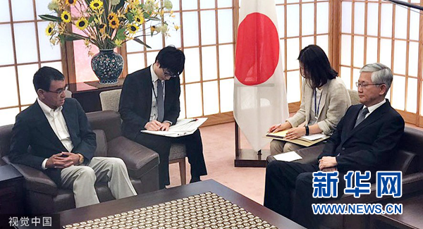 7月19日,日本東京,日本外務(wù)大臣河野太郎召見(jiàn)韓國(guó)駐日本大使南官杓,抗議韓方對(duì)日方提出的成立包含第三國(guó)成員的仲裁委員會(huì)來(lái)解決“強(qiáng)征勞工索賠案”的提議不予回應(yīng)的做法。(圖片來(lái)源:視覺(jué)中國(guó))