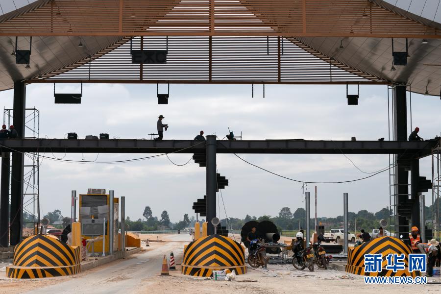 這是10月27日在老撾首都萬(wàn)象拍攝的建設(shè)中的萬(wàn)萬(wàn)高速公路萬(wàn)象入口。新華社發(fā)(凱喬攝)