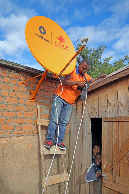 在馬達加斯加,來自塔那那利佛市區孤兒院的賈斯丁和伙伴們好奇地張望著接收電視信號的“小鍋蓋”?!敖由线@個天線我們就能看電視了,聽說電視里有很多世界各地的節目。”