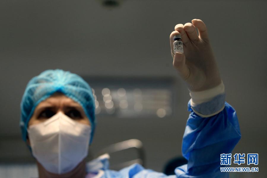 12月27日,在羅馬尼亞首都布加勒斯特一家傳染病醫(yī)院,醫(yī)務人員向媒體展示新冠疫苗。新華社發(fā)(克里斯泰爾攝)