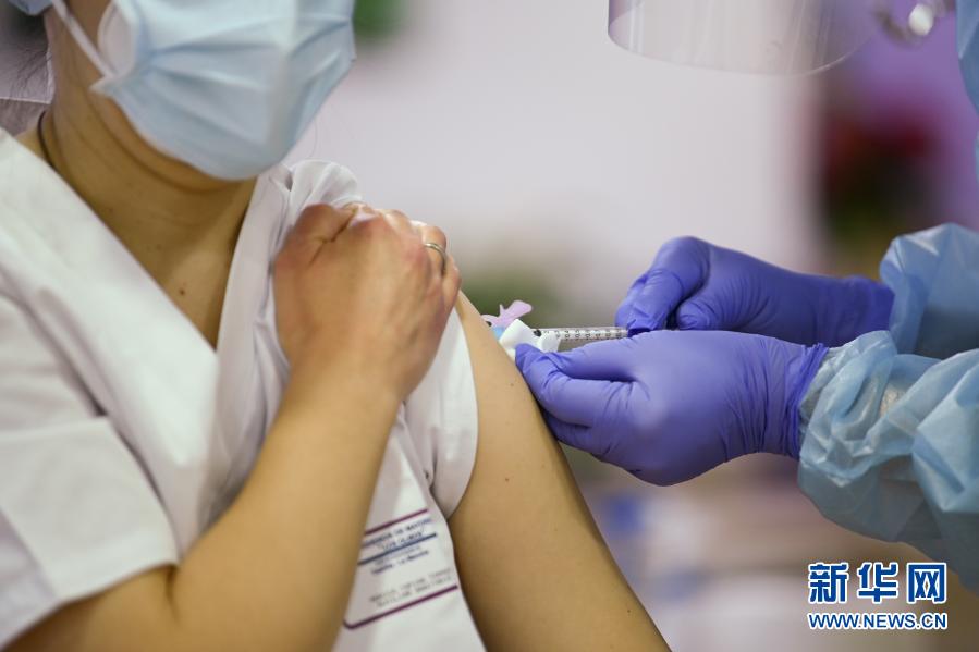 12月27日,在羅馬尼亞首都布加勒斯特一家傳染病醫(yī)院,一名醫(yī)務人員在接受新冠疫苗接種。新華社發(fā)(彼得雷斯庫攝)