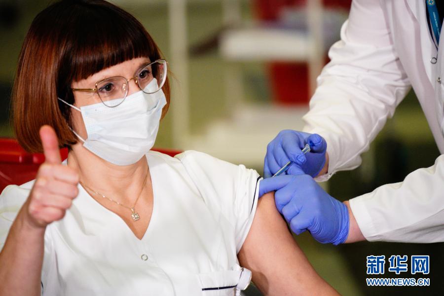 12月27日,在波蘭首都華沙一家醫(yī)院,一名醫(yī)生接種新冠疫苗。新華社發(fā)(亞普·阿林攝)