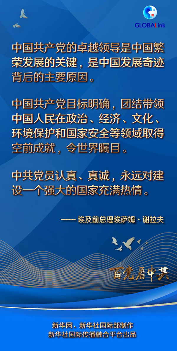 謝拉夫表示,中國(guó)共產(chǎn)黨目標(biāo)明確,團(tuán)結(jié)帶領(lǐng)中國(guó)人民在政治、經(jīng)濟(jì)、文化、環(huán)境保護(hù)和國(guó)家安全等領(lǐng)域取得空前成就,令世界矚目。