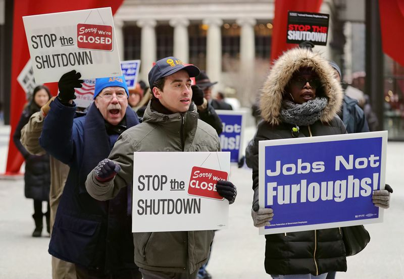 2019年1月18日,在美国芝加哥,联邦雇员游行抗议政府“停摆”。新华社记者 汪平 摄